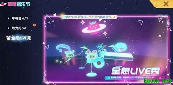 点击【草莓音乐节】活动图标,进入【全息live秀】页面,点击【进入演唱会】,系统便会自动寻路到达阳光牧场的沙滩。