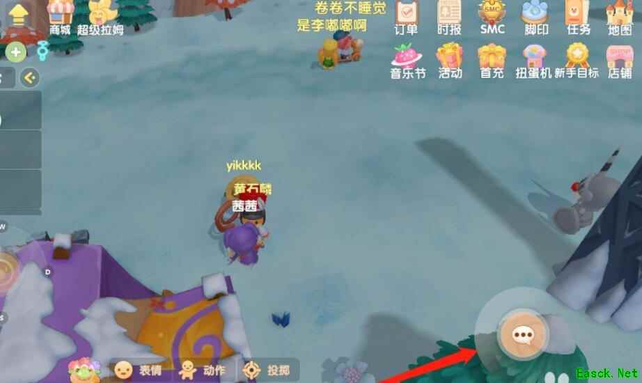 4、点击右手边的对话按钮,当出现的聊天界面后,点击“绑定米米号”