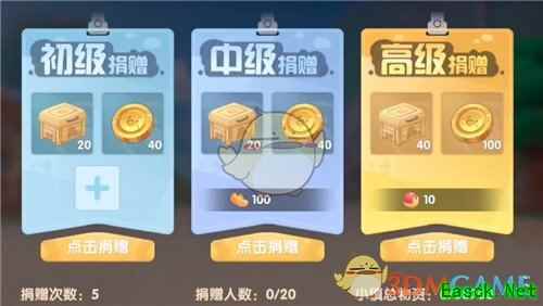 捐赠分为初级捐赠、中级捐赠和高级捐赠。