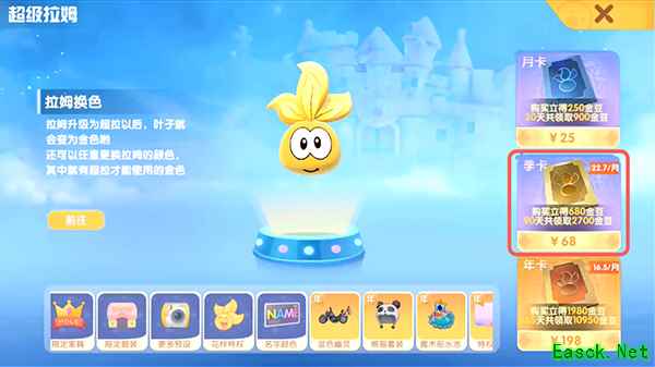 2、在超级拉姆的右侧,点击【季卡】进入购买页面;