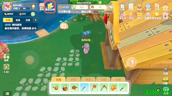 1、打开摩尔庄园手游,在游戏的左上角点击【超级拉姆】;
