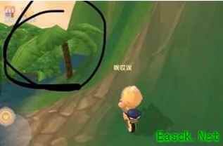 大概走到这颗椰子树前面,会看到有个地方山体是翠绿色的,那里随便一爬就能上去。