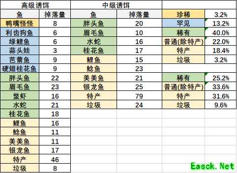 掉一条特产鱼所需成本=低级诱饵价格/特产鱼掉率≈47.5