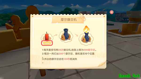 3.靠近后点击右侧的按钮,首先会弹出摩尔爆豆机的使用说明,点击【购买爆竹】;