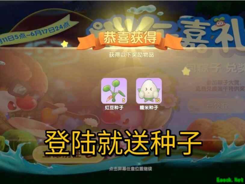 另外活动期间,登录就会有糯米、红豆种子领取。