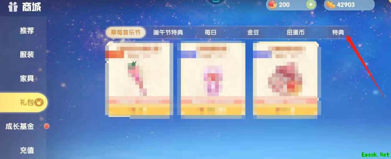 3、选择并点击特典。