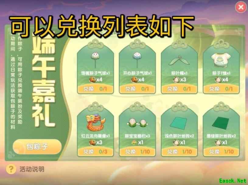 2、进入端午嘉礼兑换页面兑换,4个白米粽可以兑换一件,限量一件。