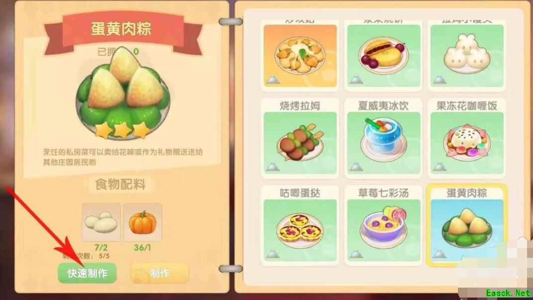成功得到菜谱以后,进入餐厅选择蛋黄肉粽点击制作,即可成功获取蛋黄肉粽。