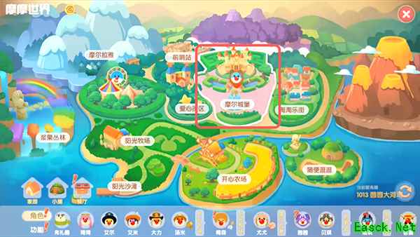 1、打开游戏中的【地图】,通过地图来到【摩尔庄园】;