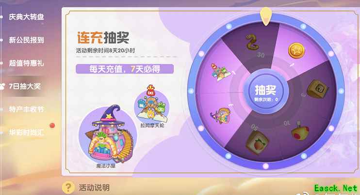 (每日充1元就可抽奖 7天必得拉姆摩天轮和魔法小屋 还是很值的),抽到之后可以在家园摆放