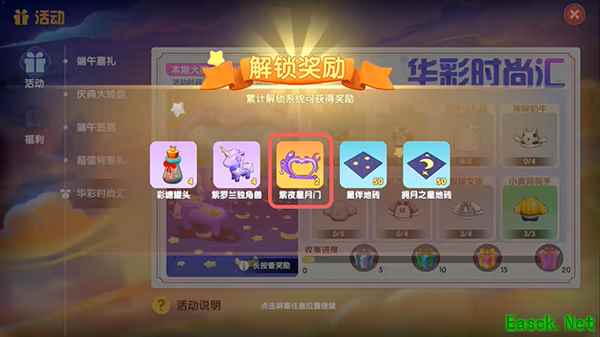 在游戏内,紫夜星月门是华彩时尚汇活动中的终极奖励,在6月1日到7月1日活动期间,收集指定的20套服装就可以领取该奖励,其中就包括2个紫夜星月门。