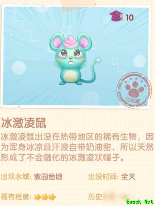冰淇淋鼠在浆果丛林全天都可以获取,另外在家园池塘好像也能获取,总体来说获取难度不是很高。