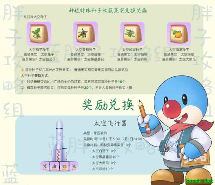 太空种子可以种出普通太空果实,有几率长出变异太空果实,普通和变异太空果实均可兑换奖励