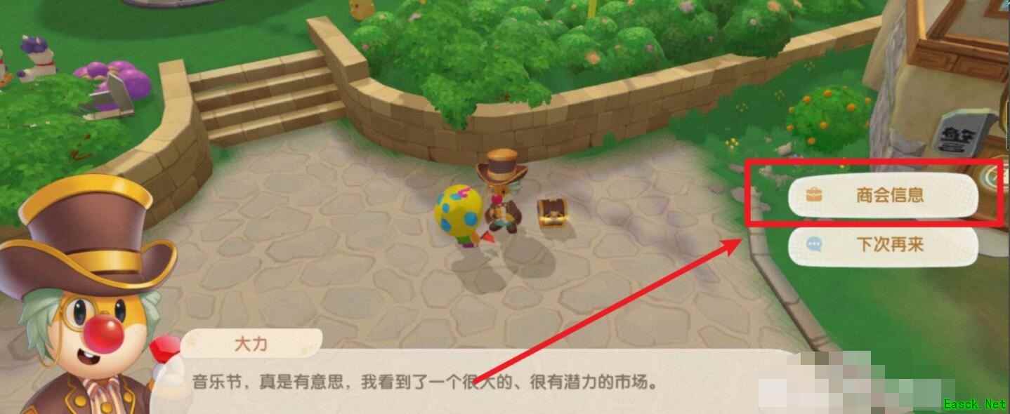 1、找到神秘商店的npc大力,与之对话对话,选择“商会信息”。
