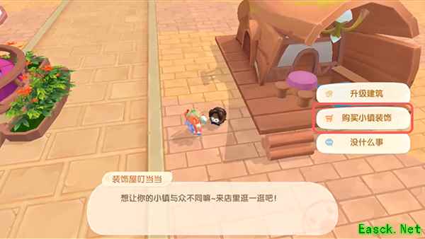 3、在小镇找到【装饰店叮当当】对话,选择【购买小镇装饰】;