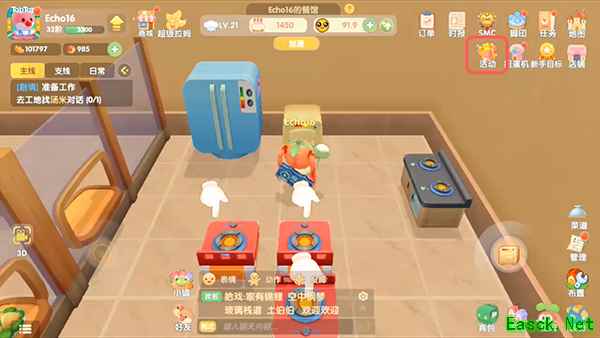 在摩尔庄园游戏的右上角点击【活动】;
