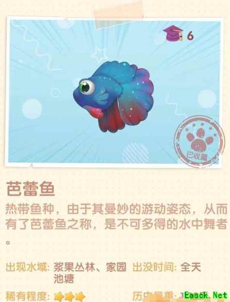 2、芭蕾鱼一般在浆果丛林、家园池塘里刷新,其他区域是不会刷新和钓到的。