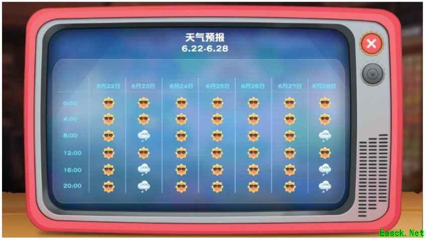 如果小摩尔们担心会忘记,具体的时间大家可以回到小屋内,查看小屋的电视机查询一下当天和明天的天气情况。