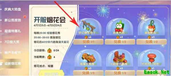 1、这个秋千是开服庆典活动的奖励之一,玩家通过开服烟花活动收集漫天星花,之后在活动界面内就可以兑换这个道具奖励了。