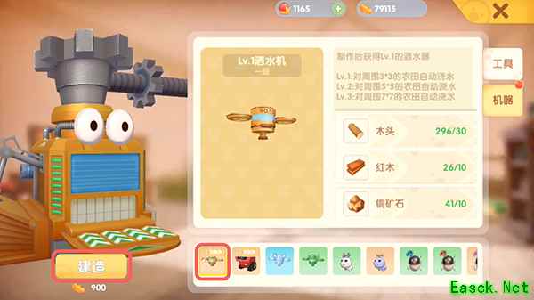 4.选择需要升级的洒水机,消耗对应的材料点击左下方的【建造】消耗摩尔豆升级即可。