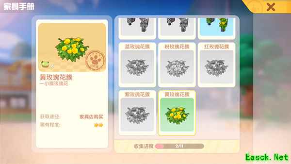 购买路径:店铺 - 埃里克斯家具店 - 邻居装饰 - 商店2级 - 黄玫瑰盛绽