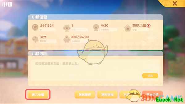 2.在小镇资料面板中,点击下方的【进入小镇】;
