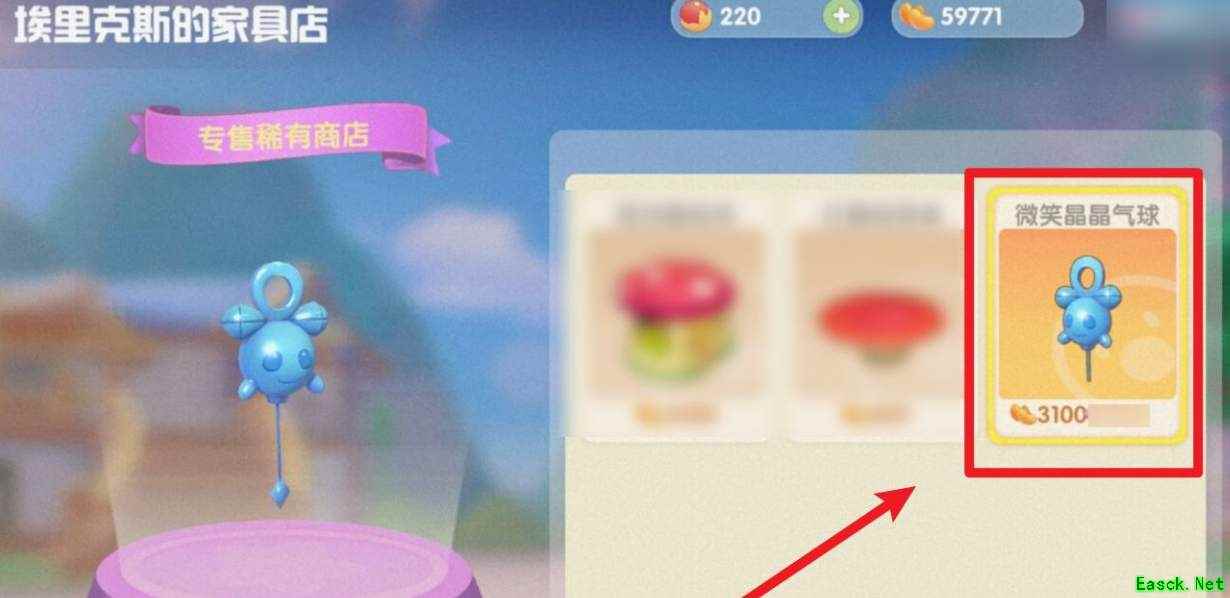 微笑晶晶气球是埃里克斯家具店出售的物品,售价3100摩尔豆,这个道具是专售稀有商店的道具,也就是只有当埃里克斯上门拜访小摩尔的家园时,开放的商店里才能够购买。玩家可以寻找有埃里克斯拜访的小摩尔添加好友,然后前往其家园找NPC购买这个物品。