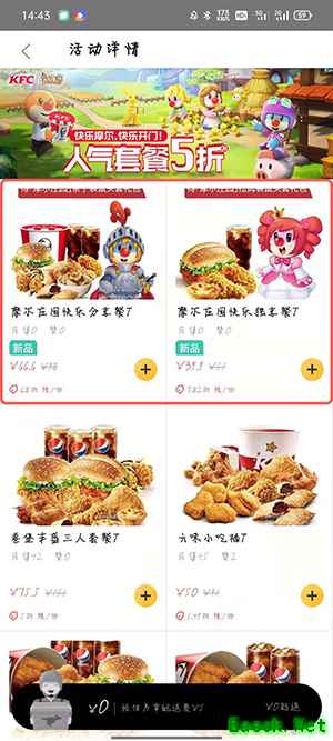 ③在活动详情中,选择需要购买的【摩尔庄园快乐分享餐T】或者【摩尔庄园快乐独享餐T】任意一个套餐;