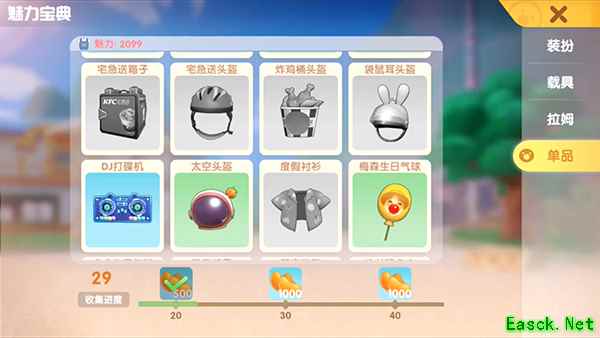 装扮类:宅急送箱子、宅急送头盔、炸鸡桶头盔、袋鼠耳头盔