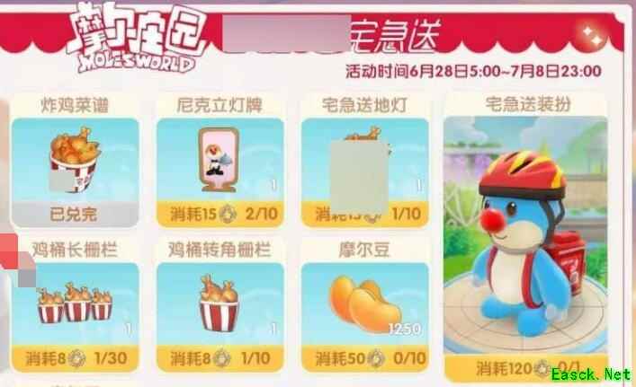 摩尔庄园与肯德基宅急送的联动活动开始之后,打开摩尔庄园游戏,点击进入活动界面,选择摩尔宅急送活动,点击鸡桶转角栅栏,用8积分即可成功获取鸡桶转角栅栏(到尼克处接取订单配送任务,获取积分)。