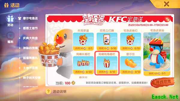 2.进入“摩尔宅急送”活动右侧的【鸡桶转角栅栏】,消耗好评点兑换可获得;