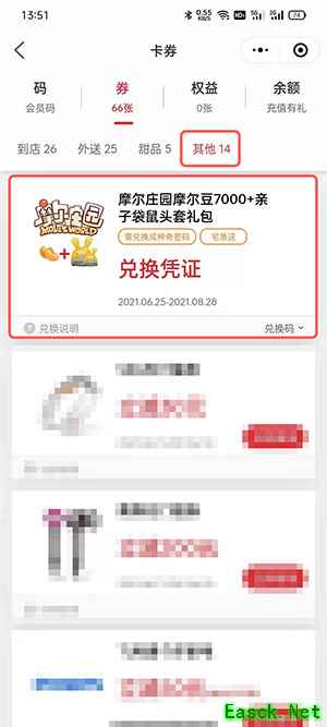 3、点击【券】,找到摩尔庄园兑换凭证。