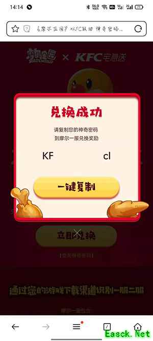 6、这样兑换码就转换为神奇密码了,再点击【一键复制】。