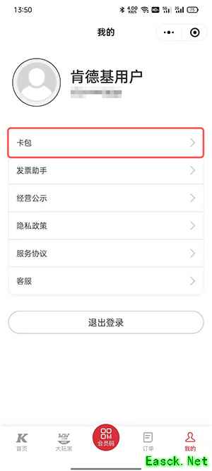 2、登录账户后,点击【卡包】。