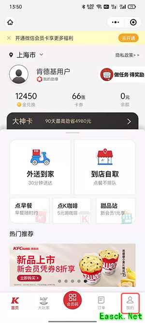 1、打开肯德基APP,点击【我的】。