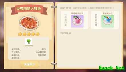 经典糖醋大鲤鱼菜谱是目前游戏中的一个BUG,在菜谱中根本没有这道菜,我们在烹饪餐厅菜打开菜谱就会出现该BUG,不过目前已经修复了。