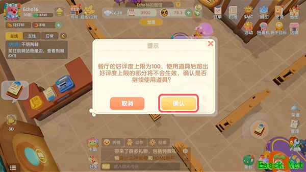 3.如果拥有餐厅好评手册,点击【确定】使用,超出好评度上限将直接浪费;