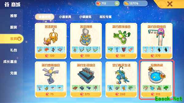 2、在左侧切换到【家具】,然后点击右侧的【休闲拉姆】;