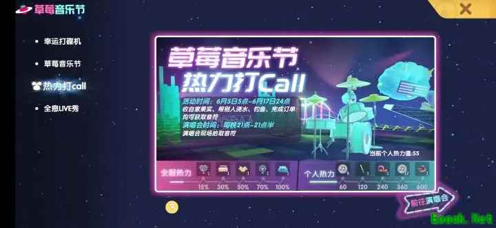 在6月5日到17日晚上九点到九点半,来到阳光沙滩参与草莓音乐节,拾取音符获得个人热力值,也可以种植音符种子获得个人热力值,个人热力值累计获得600时,可免费获得三角钢琴组合;