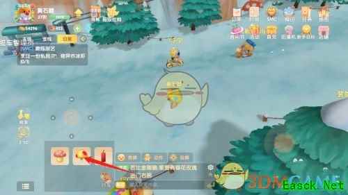 点击里面的投掷物,这时屏幕上会出现一个光标,这光标的样子像是个鸡蛋,如图所示。然后移动光标,再点击目标(别的玩家或者玄冰妖蜂),即可投掷了。