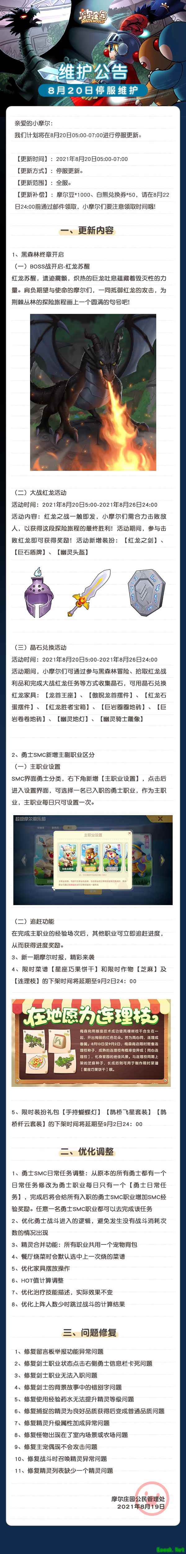 在8月20日05:00-07:00进行停服更新。维护期间小摩尔们暂时无法进入庄园,对此带来的不便十分抱歉~