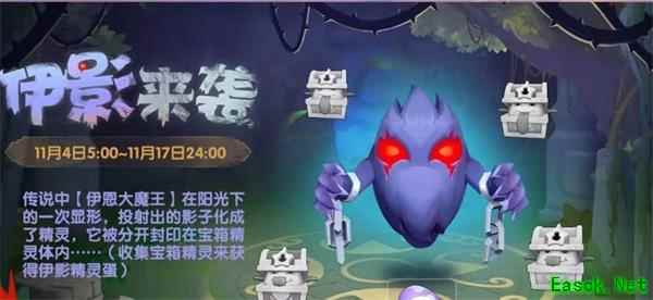 1、活动期间收集四个宝箱精灵可以领取伊影的精灵蛋。