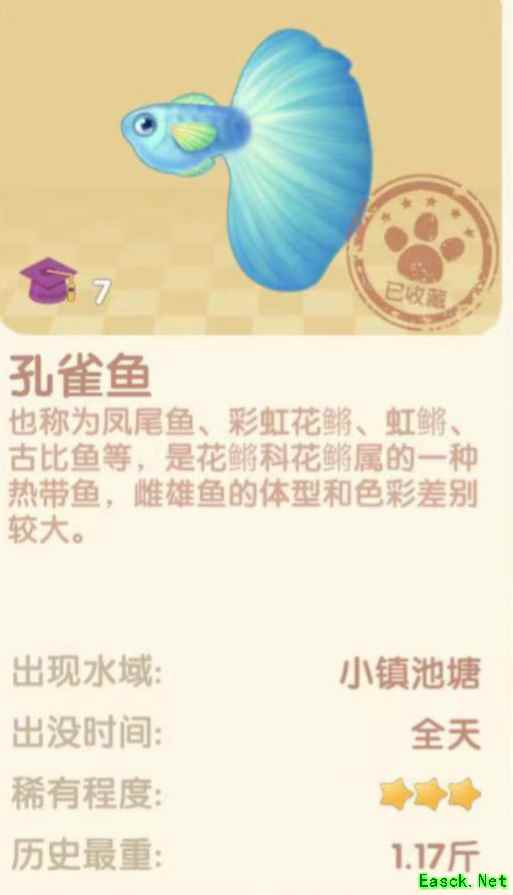 以上就是小编整理的关于《摩尔庄园手游》孔雀鱼出现时间介绍的全部内容,更多游戏攻略请持续关注易采游戏网!