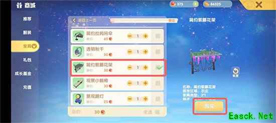 2、紫藤画花架的获得方法是在商城中进行购买。