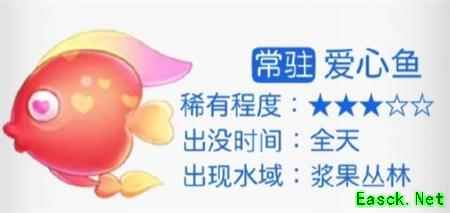 3.爱心鱼是常驻鱼,稀有度三颗星。