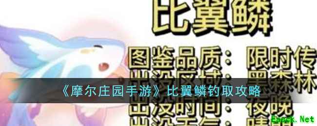 摩尔庄园手游比翼鳞怎么钓?很多玩家不知道《摩尔庄园手游》游戏中比翼鳞在哪里可以钓,游戏中全新传说鱼上线了,但是是限时上线的哦,还没掉到的玩家可以努力努力了,还有亲嘴鱼限时返场了哦,还不知道怎么钓的玩家,不知道位置的玩家可以参考小编下面带来的攻略,希望能帮助到大家。