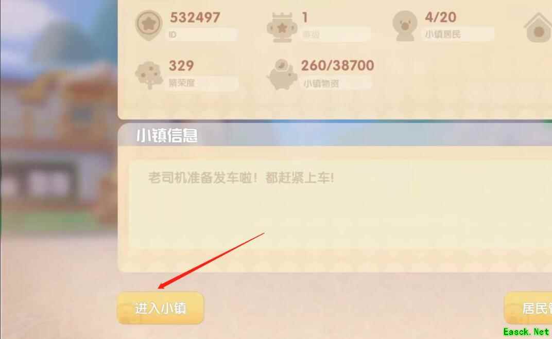 1、首先打开游戏,点击下方小镇,点击左下角进入;