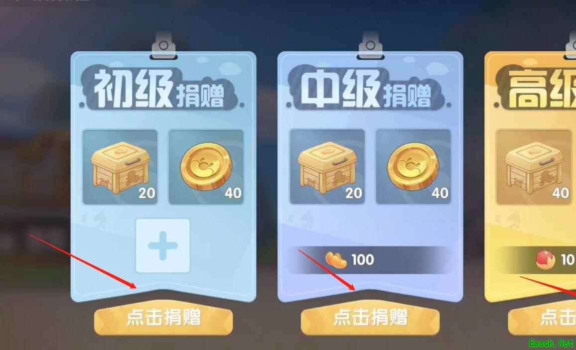 5、小镇的捐献包括初级、中级、高级捐献,等级越高,消耗越多,拿到的贡献币也就越多、
