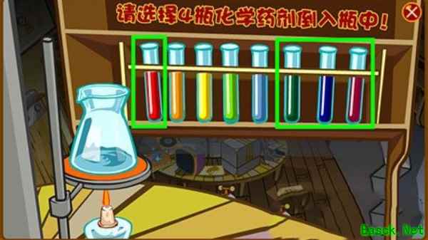 3、按照配方点击左边第一个和右边第三个试管,点击后即可进行制作