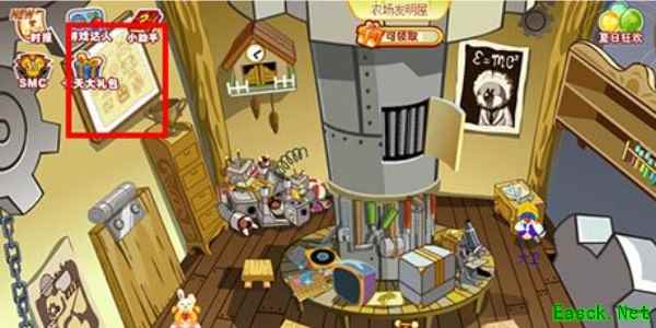 1、首先去到开心农场处,然后进入农场发明屋点击墙上的一幅画